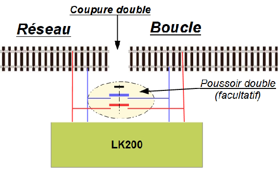 Pour remédier à cet inconvénient je place un poussoir double qui simule le passage d'un train sur la coupure.