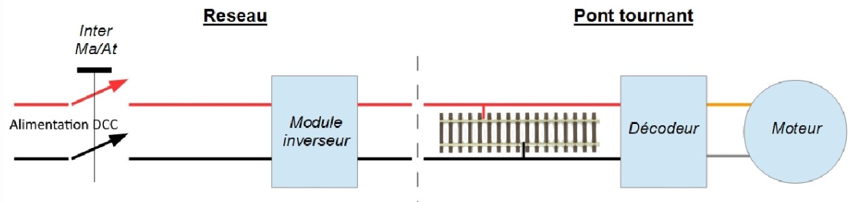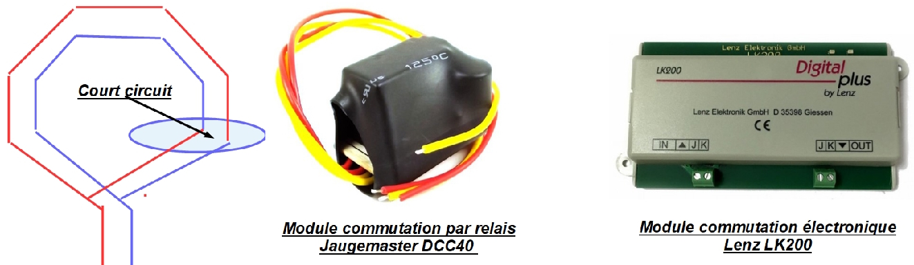 2) Pour rouler sur la boucle de retournement sans provoquer de court circuit il va falloir utiliser un petit dispositif de commutation. Ce dispositif peut être électromécanique, électronique avec commutation par relais ou commutation électronique. La commutation par relais étant un peu plus lente que la commutation électronique n'élimine pas la totalité des courts circuit. La commutation électromécanique est tributaire du sens de marche.
