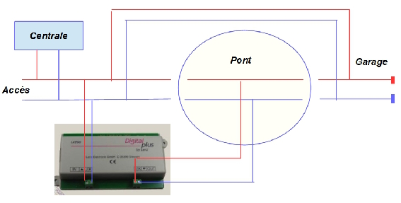 A l'origine mon réseau était analogique et dans la gare se trouvant deux cisaillements j'ai du concevoir un système assez compliqué avec du relayage. Puis je suis passé à une commande numérique MRC Prodigy qui m'a donné entièrement satisfaction. J'ai équipé mes boucles avec le module DCC 40et j'ai constaté que la boucle la plus éloignée de la centrale disjonctait par moment. La centrale Prodigy ayant atteint la limite de sa puissance (1,5A dans les rails) je suis passé à la Hornby Elite (4A). La boucle continuant de disjoncter je suis donc passé à une solution électromécanique : ILS et relais.