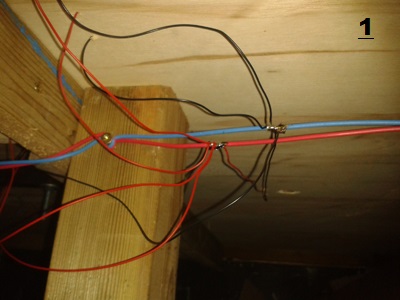 En ce qui me concerne ma DCC doit alimenter mes engins de traction, les éclairages des différentes voitures ainsi que la signalisation et son relayage. Pour alimenter ma voie j'ai fait au plus simple et au moins chère. Comme mon réseau est un tour de pièce une ligne en 2 x 1,5 fait le tour de la pièce sous la table et au sol sous le lino au niveau des portes. Cette ligne est réalisée soit en fil rigide reste de la construction de ma maison ou en câble souple pour haut-parleurs puissants. Avec ce système aucune chute de tension est à craindre. Bien sur j'utilise deux couleurs. Là où je dois alimenter je dénude en décalant mes fils, je réalise mon piquage et je n'ai pas besoin d'isoler. Pour alimenter les zones d'aiguillage et signaux j'utilise soit du câble en nappe pour les courtes distances, soit du câble téléphonique à 20 ou 30 paires. Ce câble ce trouve chez Conrad. Pour alimenter mes éclairages je vais aussi tirer une ligne en 2 x 1.5 et y faire des piquages. La suite en images :