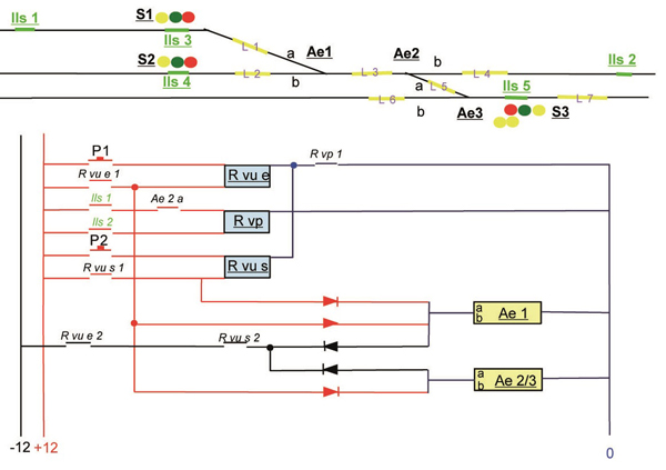 sur le TCO. Des contacts d'aiguillage commandent des mini-ampoules