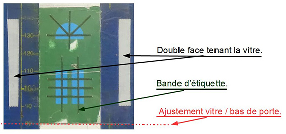 Opération suivante : mise en place du double face sur la vitre et la partie centrale de la porte.