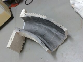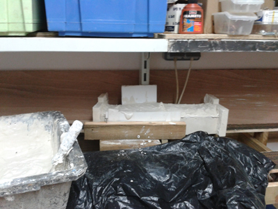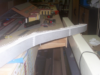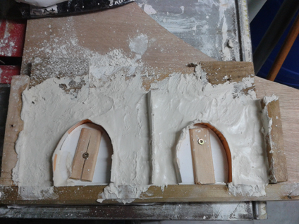 5 . Beaucoup de formes courbes peuvent être coulées sur place : le carton plume de 3mm convient parfaitement à la construction de moules pour des murs de soutènement. On peut au travers de la mousse clouer directement dans le contreplaqué. |