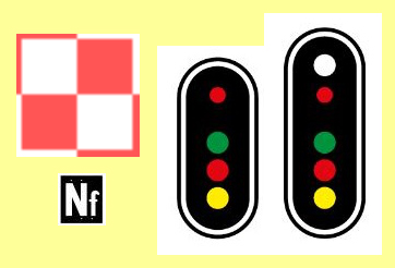 Signalétique. Pas facile voir impossible de trouver de la signalétique autre qu’ actuelle sur Internet. La confection ainsi que la police des panneaux "Capgirard" est décrite au chapitre 4.4 de la page faire des luminaires. Sous les horloges j’ai placé des numéros de voies. Dans un premier temps avec Open Office option dessin j’ai dessiné mes panneaux que j’ai imprimé sur du papier 120Gr. Comme les indications doivent être lisibles, mes dessins sont conçus pour obtenir le recto verso par pliage. Pour faciliter le travail des traits de coupe ont étés prévus.