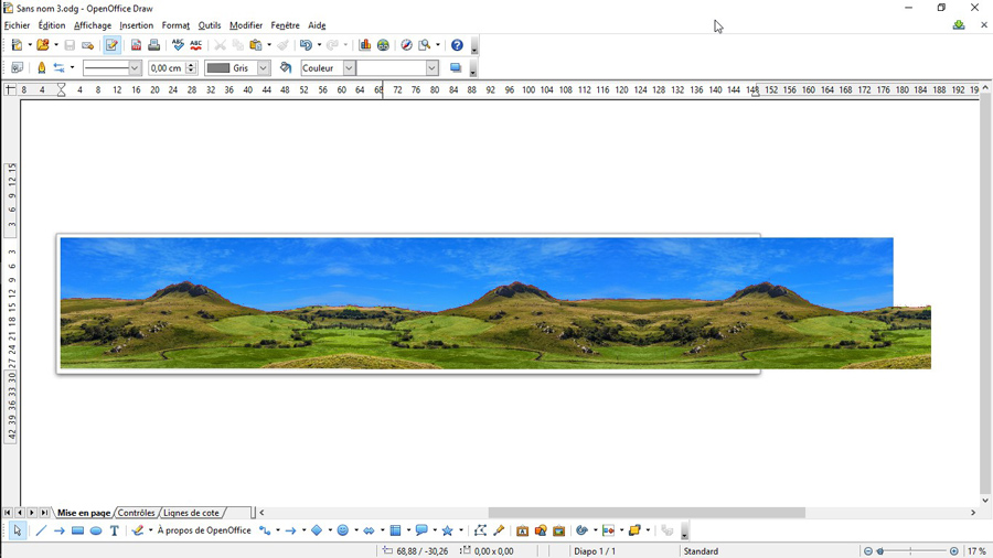 Maintenant que vous avez un ciel allons vous allez faire le paysage du premier plan. Retour vers ciel. Toujours avec Google vous cherchez une image libre de droits que vous téléchargez dans le dossier train/dessin. Ensuite au choix : |