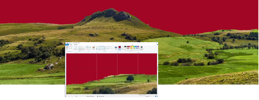 Les images numériques sont constituées de tout petits carrés juxtaposés les un contre les autres qui à leur tour contiennent des petits carrés. Pour achever notre teinte unie, nous allons avec le zoom maxi compléter notre coloriage. Utiliser le copier/coller du rectangle 3 vu plus haut, le trait droit épais et le crayon trait fin pour fignoler carré par carré. Attention avec les traits verticaux et les courbes : les carrés de couleurs différentes sont souvent imbriqués les uns dans les autres. Soyez le plus patient et le pus minutieux possible. |