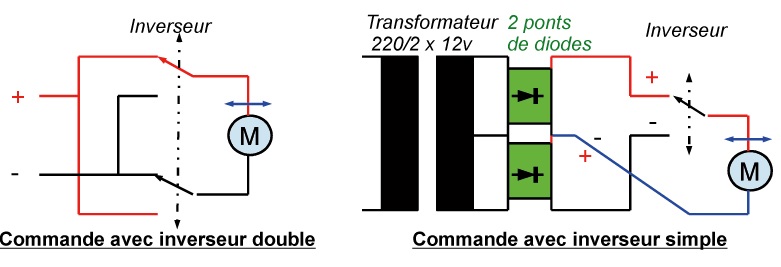 les commande avec des interrupteurs inverseurs. Il y a plusieurs