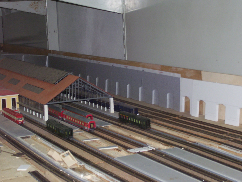 Mur en pierre REGION et COMPAGNIE sur carton plume de 10 mm. Prochaine étape remplissage des quais avec de la colle carrelage grise. |