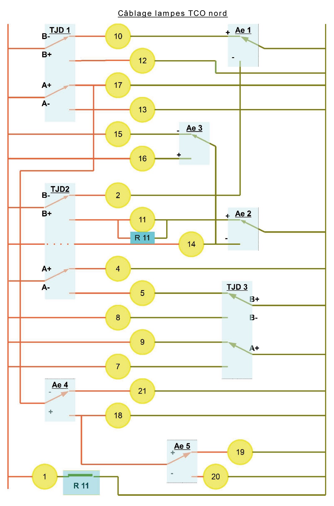 aiguillages. Attention une lampe (L1) ne dépend d'aucun