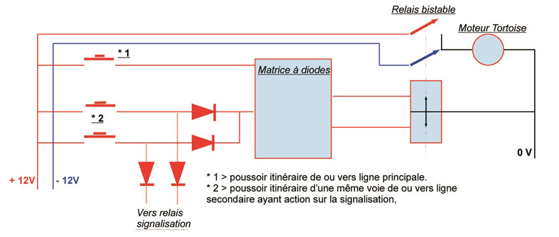 diodes commande les bobines du relais. Chaque poussoir correspond